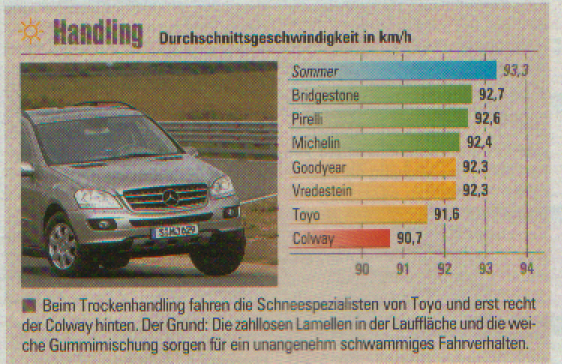 Z ciekawostek podam test opony w katalogu jako letnia badana w warunkach zimowych i o dziwo nie odbiegała od opon zimowych nawet trochę lepiej.