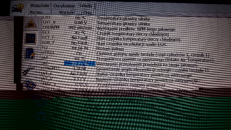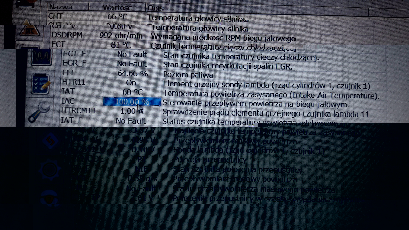 1.IAC - sterowanie przepływem powietrza na biegu jałowym : przeskakuje cały czas z 50% na 100% czy to jest prawidłowo?
