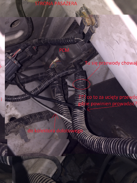 Zanim jednak będę sprawdzał te elementy nurtuje mnie od paru miesięcy co to jest za czarny , pusty w środku, przewód na zdjęciu [w załączniku]. Szary po kilku przejściówkach znika w kolektorze dolotowym. Zaś oba znikają za burtą tuż obok PCM. Dlaczego ktoś mi go uciął ?