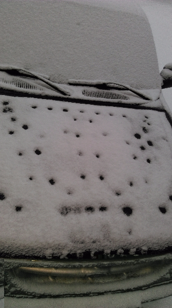 W polandii, na mazowszu też jest ex z takim napisem na masce :D Widocznie stał pod dziurawym dachem i tak kapało na maskę podczas roztopów.