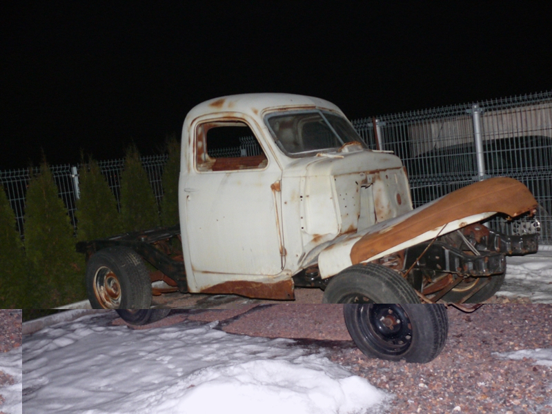 Tak to wygląda na dzień dzisiejszy, jest reszta oryginalnych blach, a nawet zmodyfikowana maska i błotniki od Warszawy i trochę innych przydasi. Ostatecznie kabina ma być przycięta o jakieś 6 cm, szyby są proste więc nie ma większego ograniczenia. Po przemyśleniu tematu postanowiłem pozostać przy tym co ktoś wymyślił przede mną, czyli zaadaptowanie podwozia i napędu z Explo, najlepiej byłoby znaleźć dawcę z napędem na tył, silnikowo 4.0 V6 pierwszej generacji styknie.