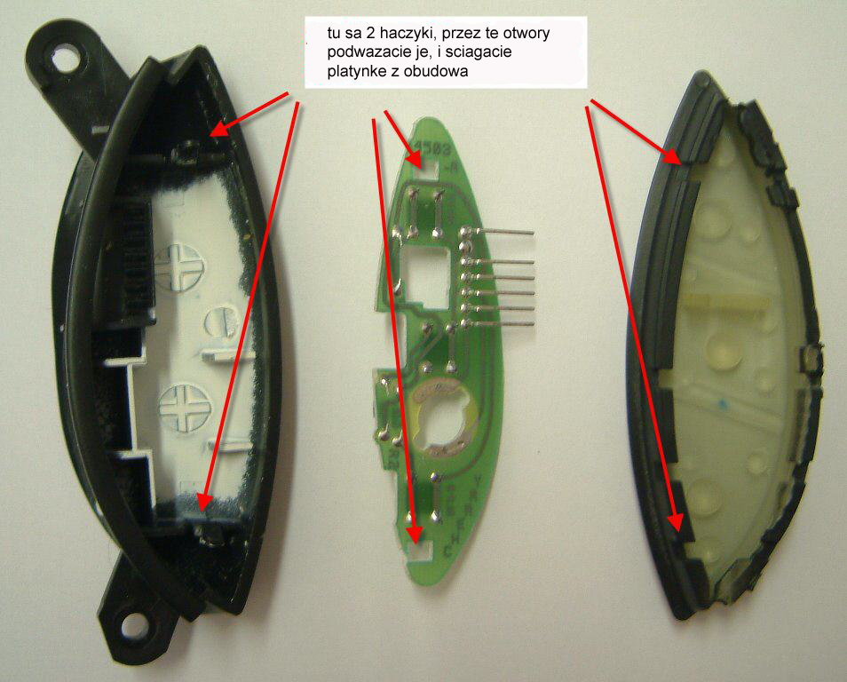 4.malym srubokretem podwazacie haczyki i sciagacie plytke z obudowa